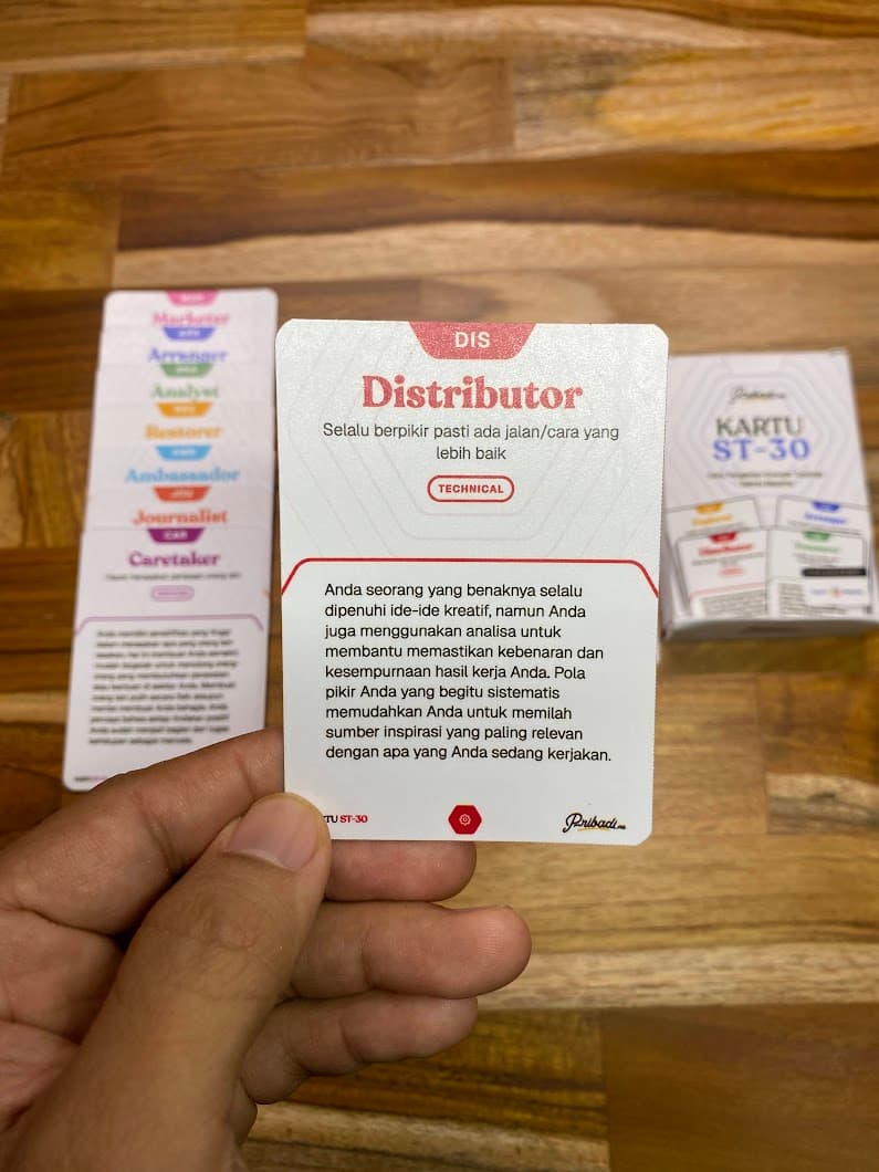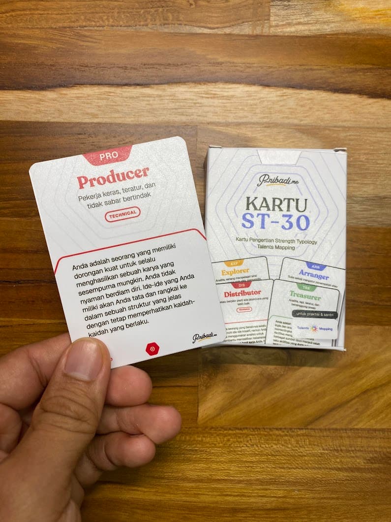 KARTU ST-30 dirancang untuk membantu praktisi/santri Talents Mapping® dan pengguna pribadi dapat eksplorasi potensi diri, menggali, dan memahami 30 tipologi kekuatan manusia. Setiap kartu menggunakan skema warna yang spesifik untuk menggambarkan delapan kelompok aktivitas kerja. Dan setiap kartu memiliki setiap aktivitas yang spesifik untuk setiap tipologi kekuatan manusia.